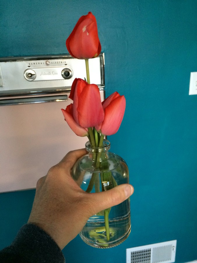 It made me think about people who lived through the Dust Bowl and how every day would have been incredibly challenging. When I arrived home, a few of my tulips had bloomed. It was the happiest sight for me! Tulips are some of my favorite flowers and these are very dainty.
